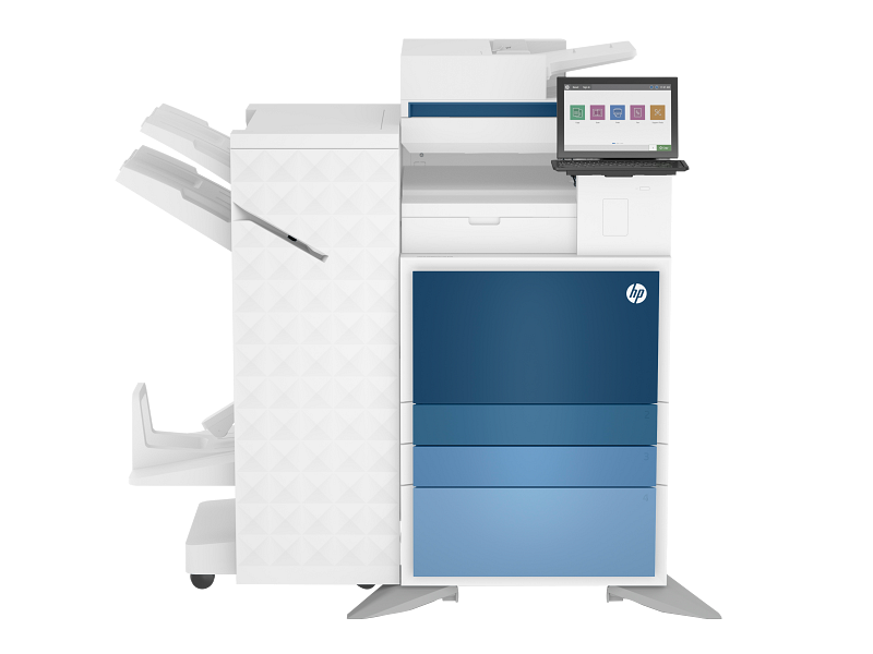 The HP MFP E786dn is a high-volume color laser printer with speeds up to 35 ppm and a 200-sheet document feeder. It handles up to 3,140 sheets of paper and supports monthly volumes of 150,000 pages. Enterprise security features and a quad-core processor ensure reliable performance for busy offices.